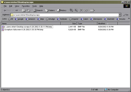 It makes nice filenames (with a datestamp) and puts BMP files in a folder called "scraps" on your