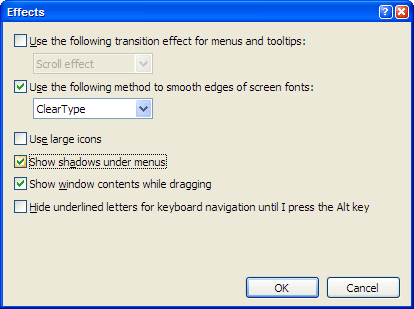 But if we turn on the "transition effect" up above it cancels out the shadow! Small windows get no shadows (but a transition),